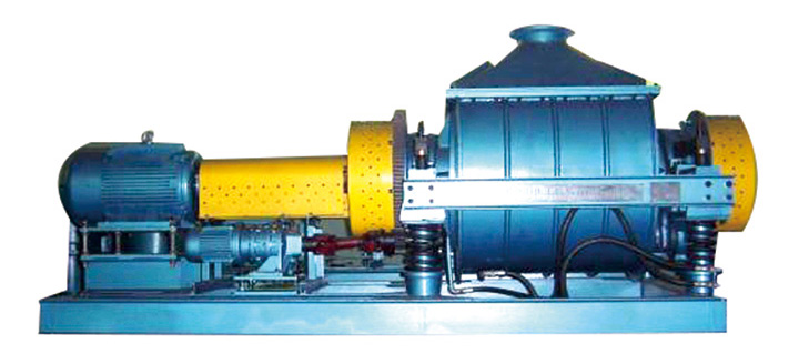 振動磨機是新型制粉設備,該機是利用圓筒的高頻振動,使筒體中的研磨介質依靠慣性力沖擊物料,磨介通常為Φ16-Φ36mm的圓鋼,鋼棒經過滲碳和淬火處理,硬度達到HRC55以上。入料粒度>15mm時取較大直徑,入料粒度<15mm時取較小直徑,并采用兩種以上規格鋼棒(鋼球)搭配使用。工作時,電動機通過撓性連軸器和萬向連軸器帶動帶有偏心重錘的激振器的軸旋轉,使筒體產生振動,筒內的磨介和物料在筒內翻轉、沖擊,使物料在短時間內得到粉碎。